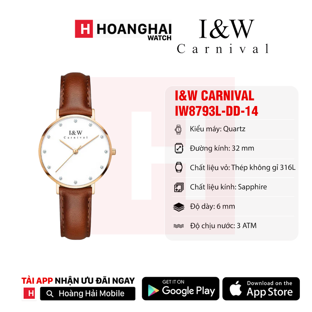 Đồng hồ pin nữ I&W Carnival IW8793