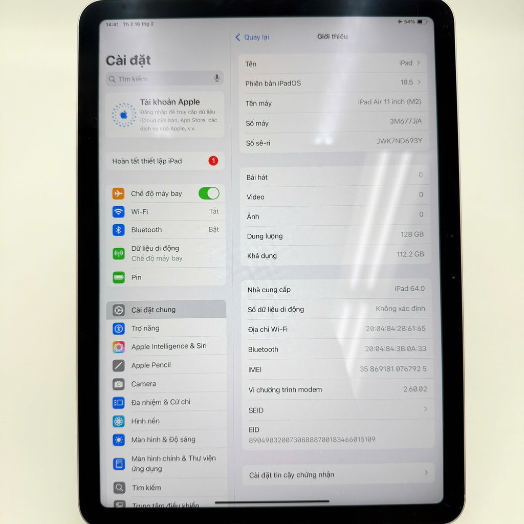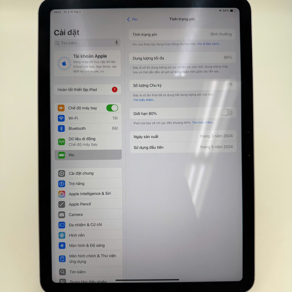 iPad Air 6 M2 2024 11" 128GB Purple Wifi + 5G 98% pin 86% DEMO Quốc tế Apple (màn xước nhiều)