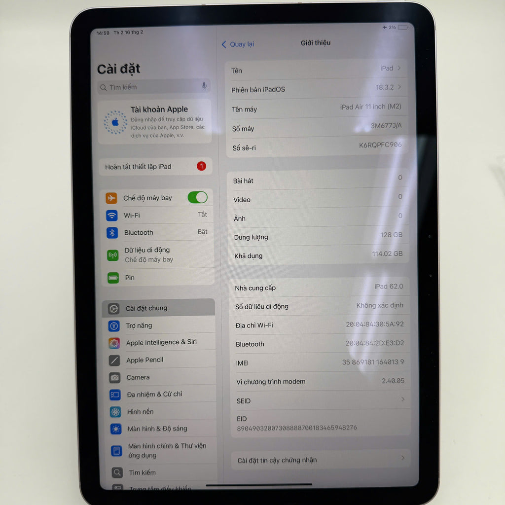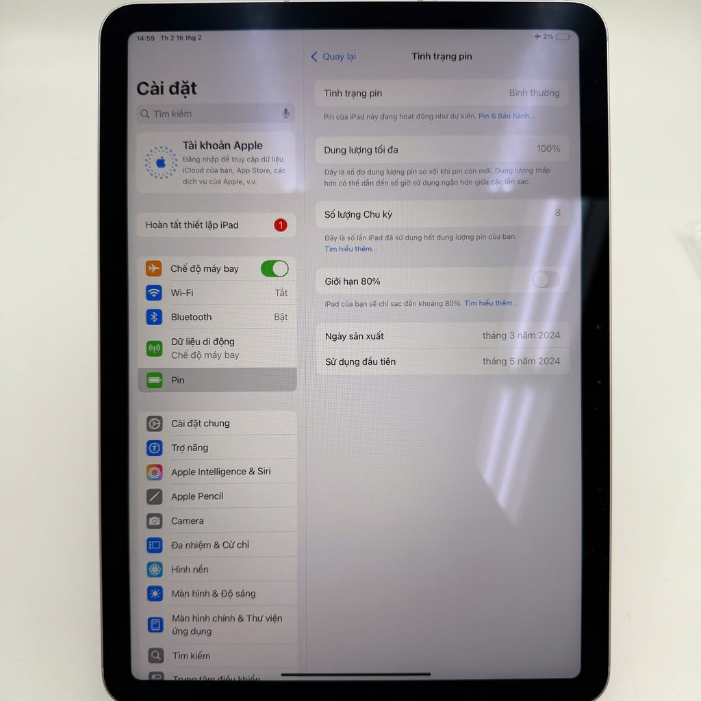 iPad Air 6 M2 2024 11" 128GB Purple Wifi + 5G 98% pin 95% DEMO Quốc tế Apple (màn xước)