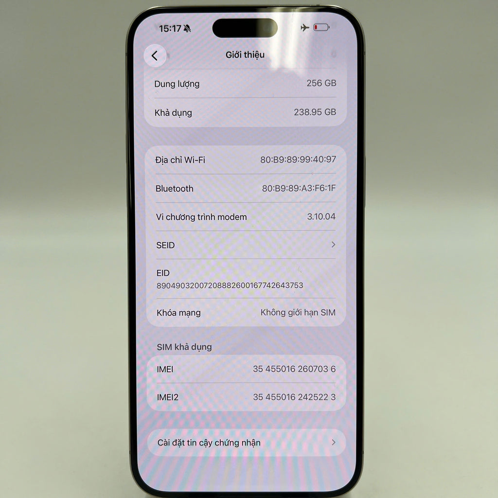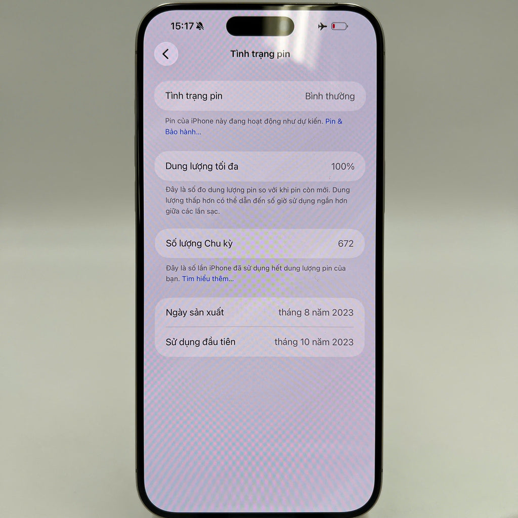 iPhone 15 Pro Max 256GB Natural Titanium 98% pin 100% Quốc Tế Apple (Đã thay pin, móp viền, đốm 0.5x) - HH7036