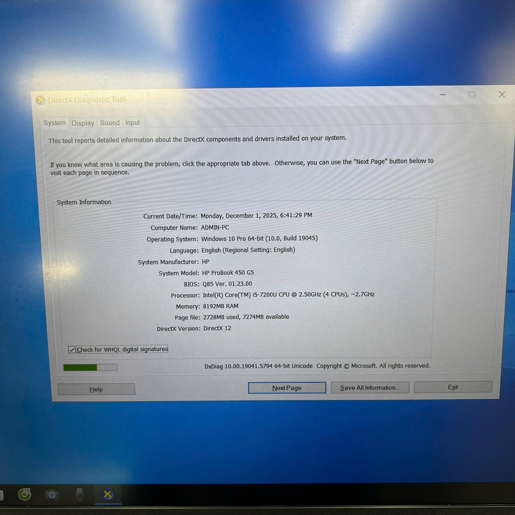 HP Probook 450 G5 15.6" Full HD i5 - 7200U/ 8GB RAM/ 256GB SSD BPTN Likenew